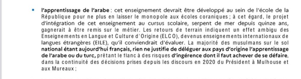 En réalité, l’objectif est d’islamiser la société française ( pacte de Marrakech pour plus d’immigration, « répartir les difficultés » c’est à dire seinesaintdeniser toute la France https://www.vie-publique.fr/parole-dexpert/277029-quest-ce-que-le-pacte-de-marrakech-sur-les-migrations) et de l’arabiser en généralisant l’enseignement de cette langue. Et comme il n’y a pas d’enseignants, des accords ont déjà été signés avec le Maroc et la Tunisie pour qu’ils envoient des profs, qui seront pris en charge par nos impôts.